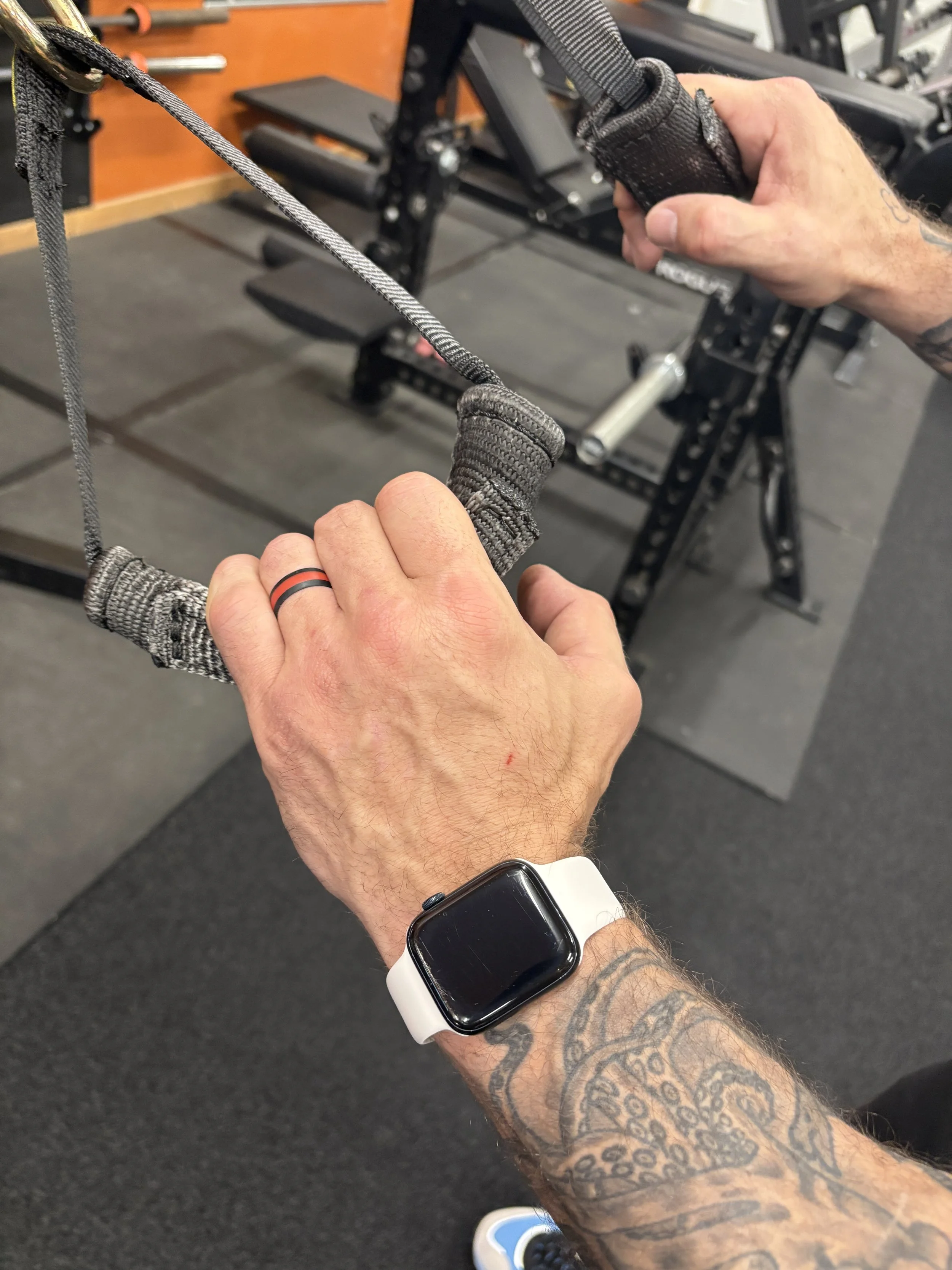 Spud’s version of a gym rope is next. This rubber/plastic “rope” offers another rope variety that also lets you wipe it down. This was the main reason for them inventing this product - as a direct alternative to the standard gym rope often used for tricep pushdowns, curls, etc. It takes a little getting used to, but I like it overall so far.