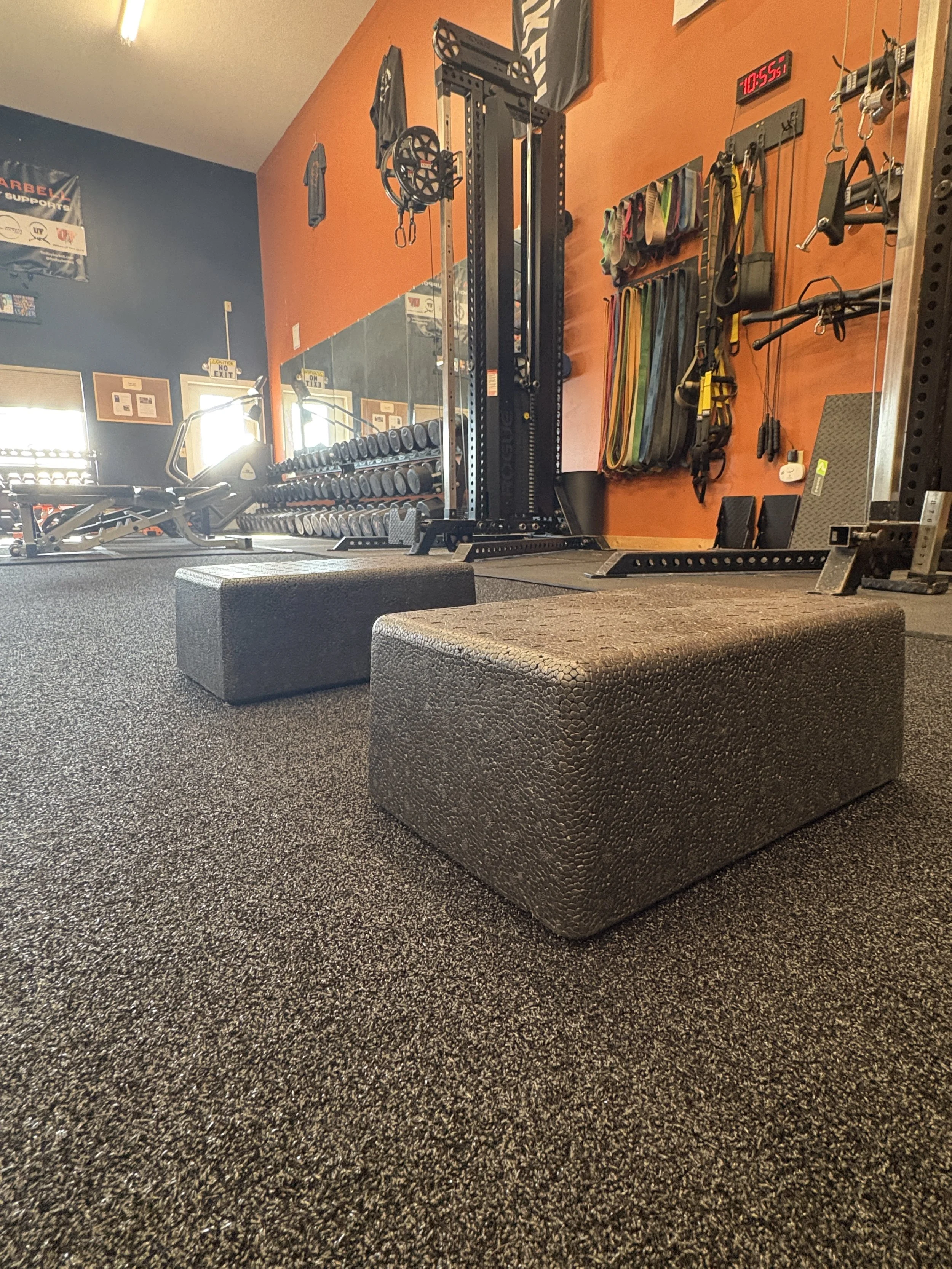 Last small item to showcase today is our new small utility boxes. I got these things on Amazon for a whole bunch of reasons! They’re called Pilates Moon Boxes and made by Balanced Body, a company that specializes in yoga and Pilates equipment. I use them personally for myself and clients with exercises like pushups, planking and core rows, and I’ve seen members use them for all kinds of reasons as well. Easy buy and easy upgrade for all gyms IMO.
