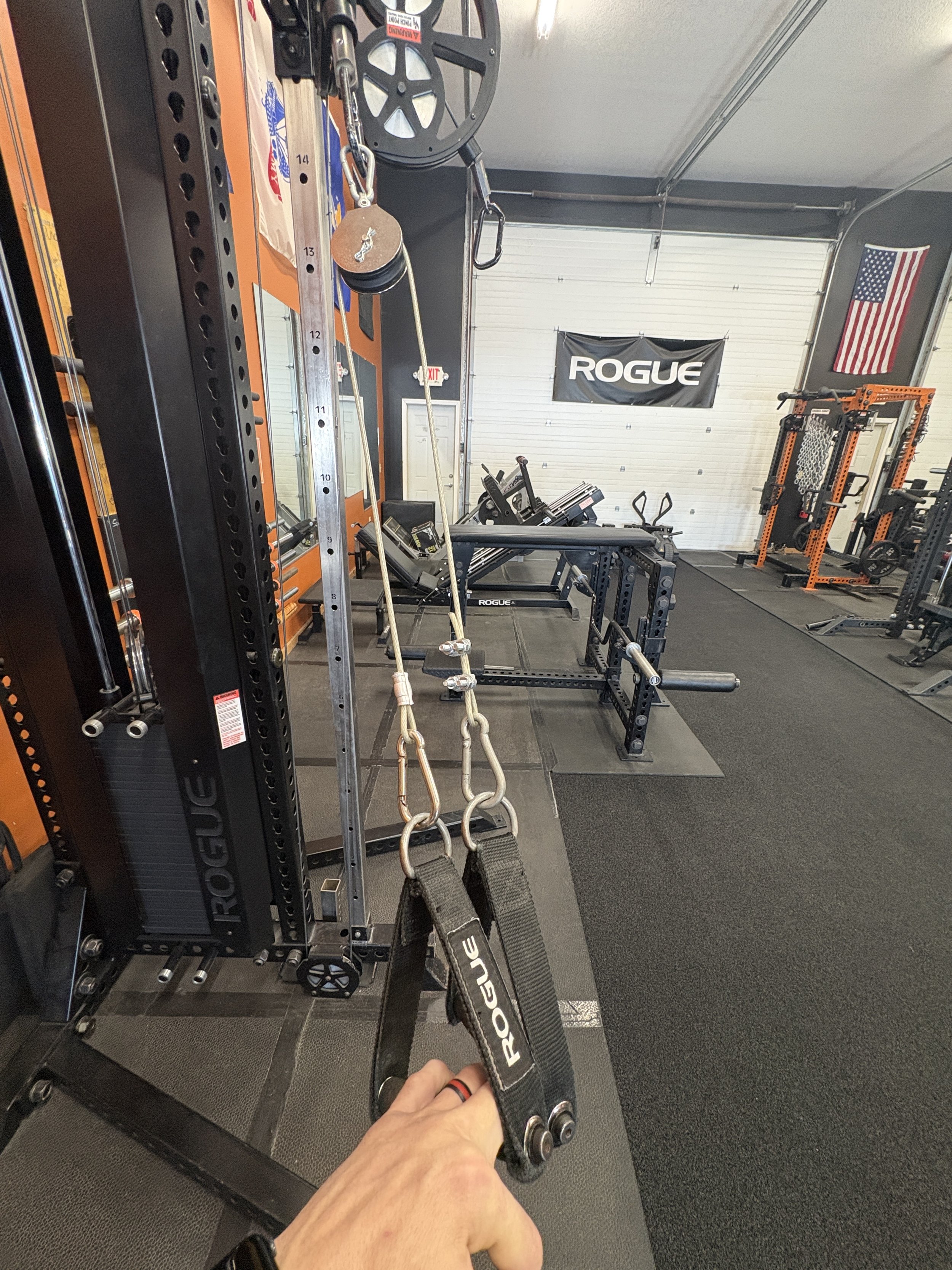 Next is our dual pulley, which was made by my friend Logan Haselman. Logan is the owner of Firehouse Fitness in Ottawa, OH and often makes homemade pieces for his gym, and made us one as well! These things sell for way too much on places like Rogue or EliteFTS, and all of the pieces are usually available at your local hardware store. Add your favorite grips to the end and you’ve got a dual pulley (or just a long handle if you just want to use double).